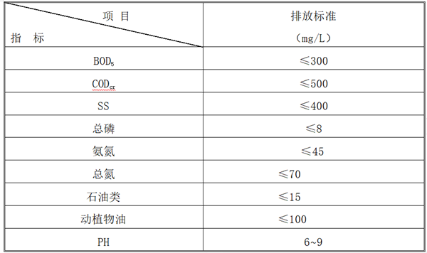 排放標(biāo)準(zhǔn)達(dá)到廣東省《水污染物排放限值》(DB44/26-2001)第二時(shí)段三級(jí)標(biāo)準(zhǔn)與《污水排入城鎮(zhèn)下水道水質(zhì)標(biāo)準(zhǔn)》(GB/T31962-2015)B級(jí)標(biāo)準(zhǔn)的較嚴(yán)值。